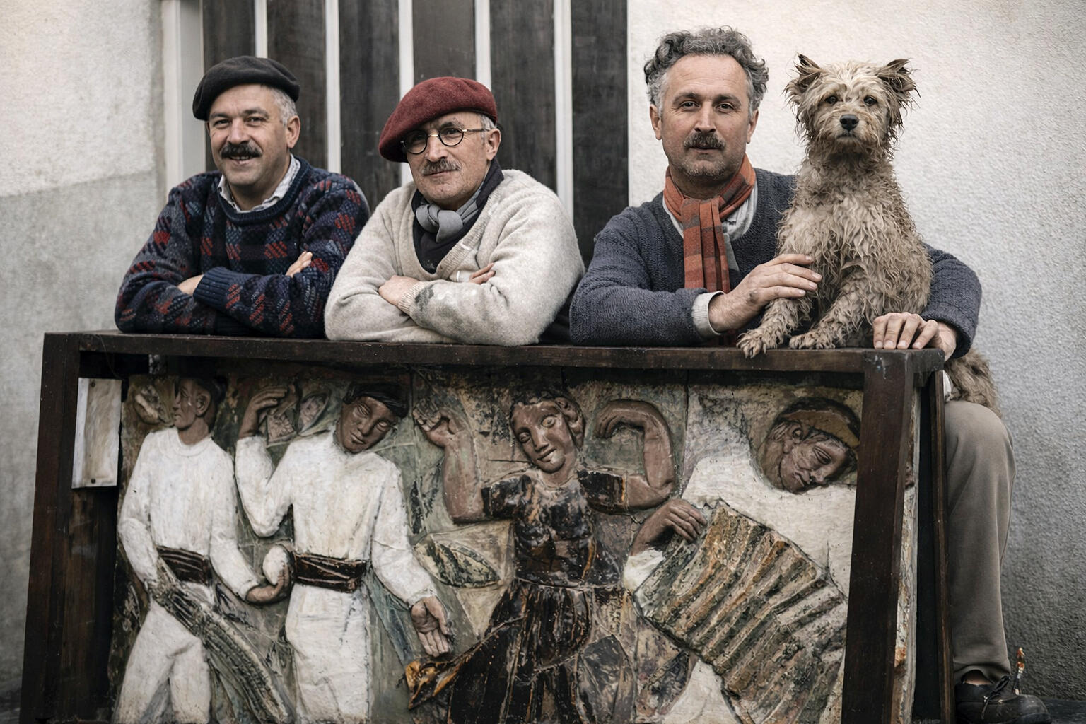 Cazaux-Vincent, Édouard, Armand et Babou / Bas-relief/scène de la vie basque 1936