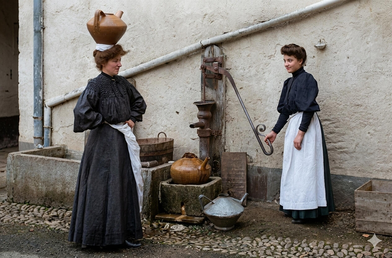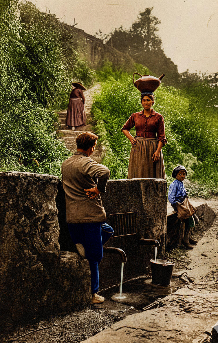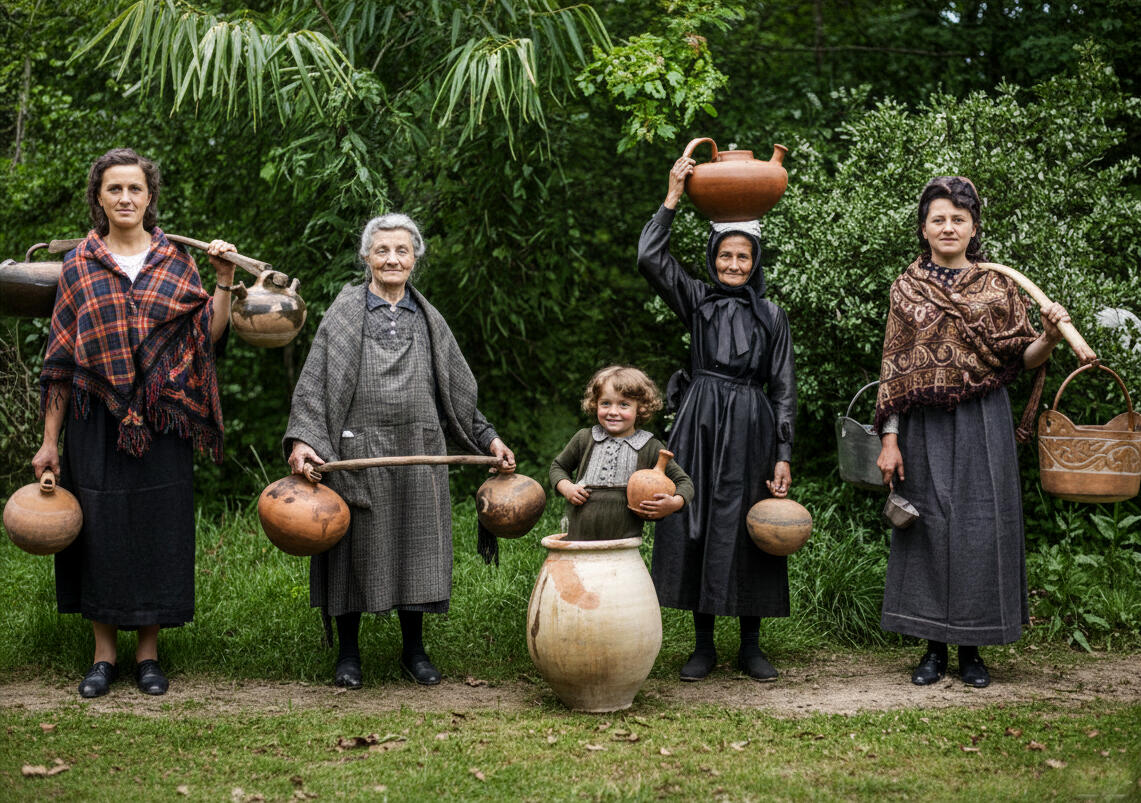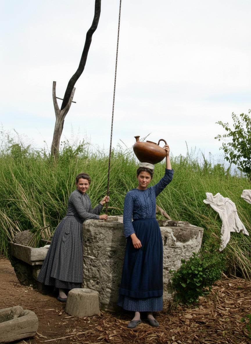 Jeunes Landaises puisant de l'eau